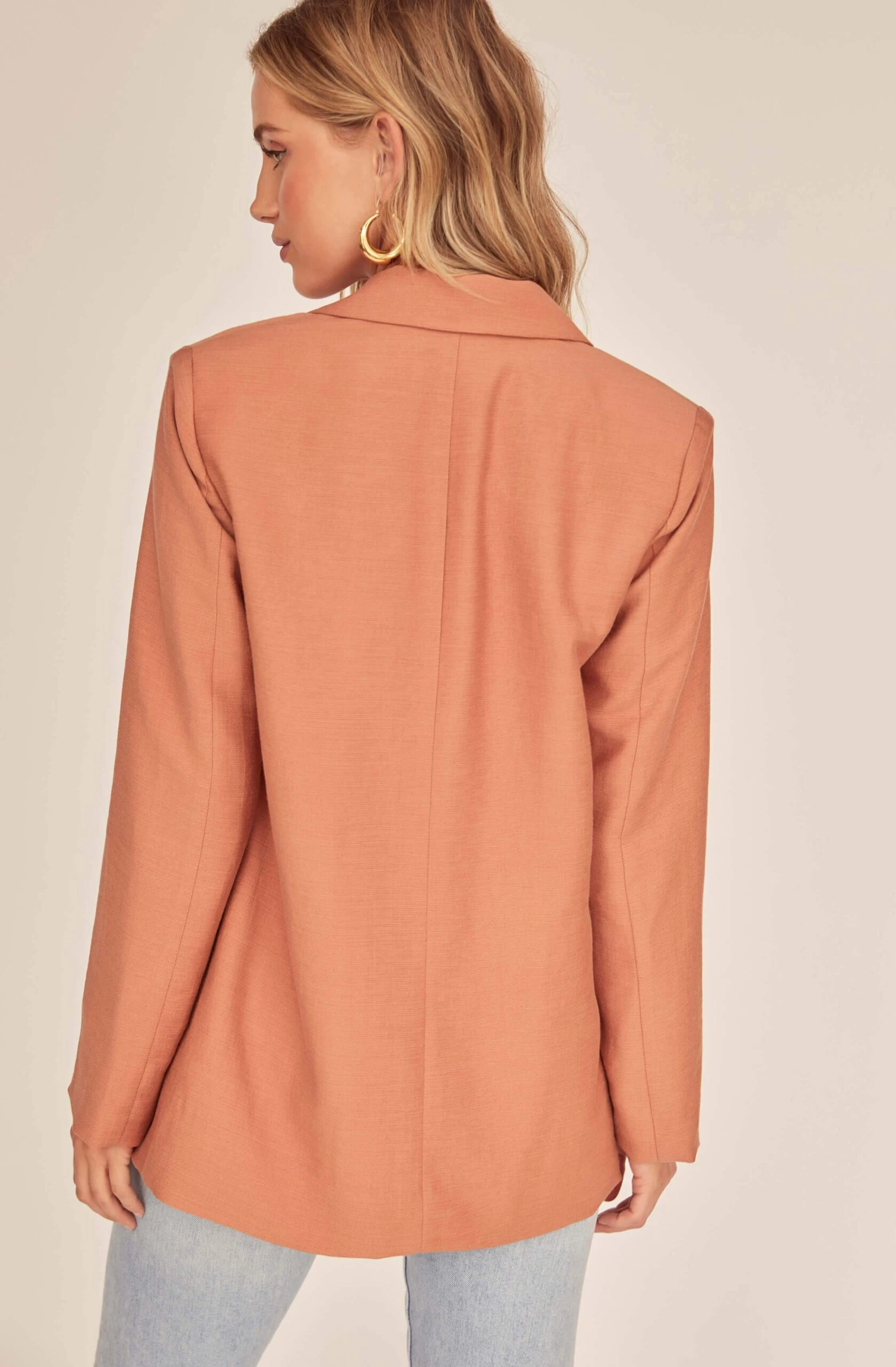 Easy styling can still be chic! The Allegra Oversized Blazer features a relaxed silhouette with a notched lapel, double breasted front and flap pocket accents at the sides. Long sleeves.