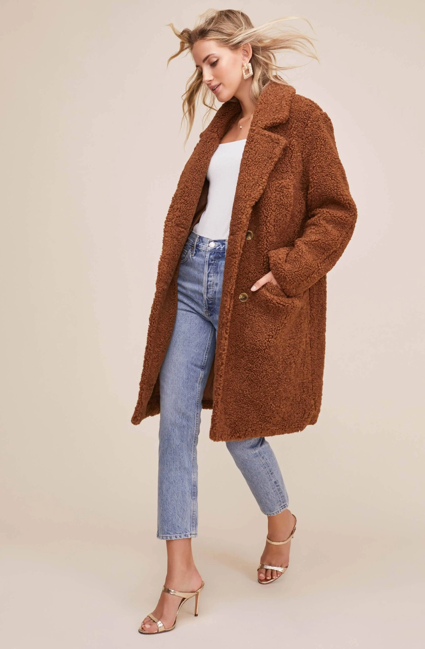 When you’ve got a luxe coat around your shoulders, what’s not to love about cold weather? The Freddie Coat is your best friend for fall and winter! Notched lapel descends to a double-breasted front and large front flap pockets. Long sleeves. Vented back.