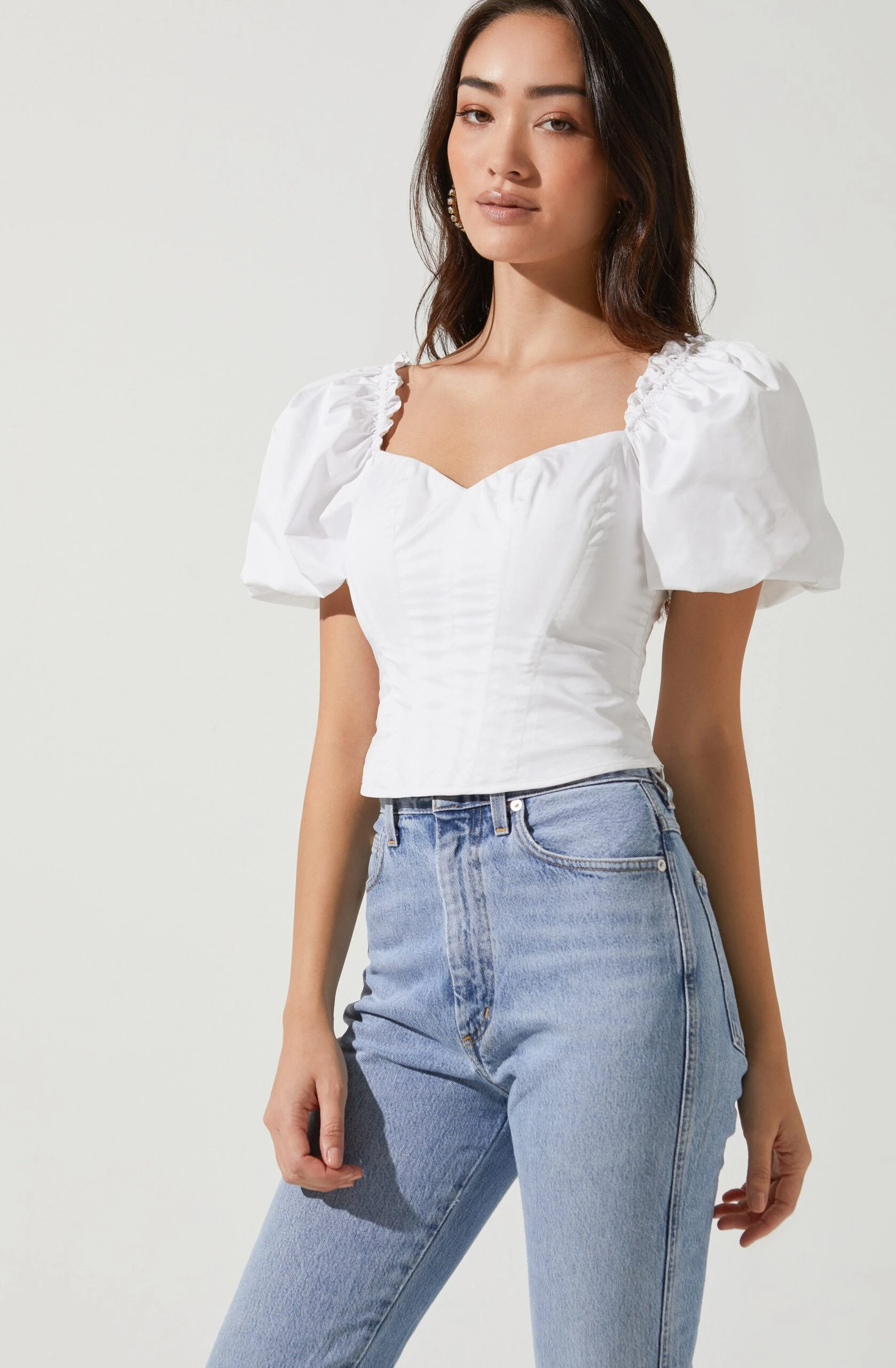 SKU: YXN0C 1695267705 Category: Tops Tags: Flag:final sale, Gift guide, Laborday, No-returns, Puff Sleeve, SHOPALL, Vt::Tops::Neckline::Sweetheart Neck, Vt::Tops::Pattern::Solid, Vt::Tops::Sleeve Length::Short Sleeve, Vt::Tops::Style & Occasion::Retro, White