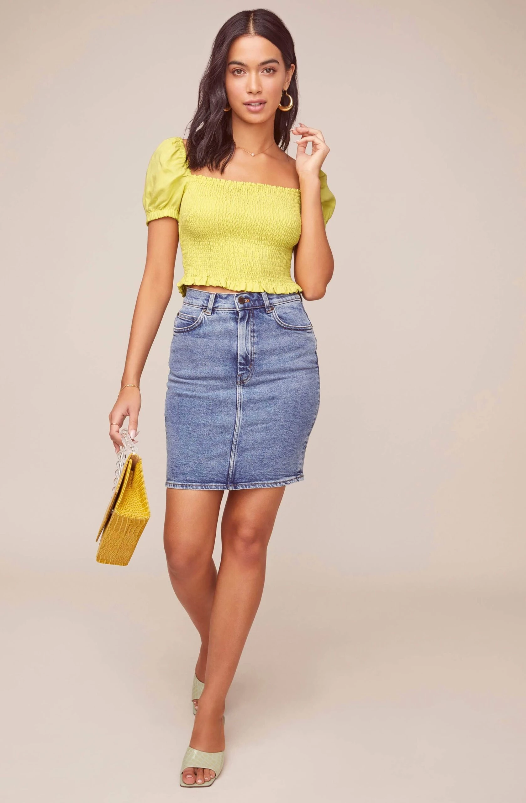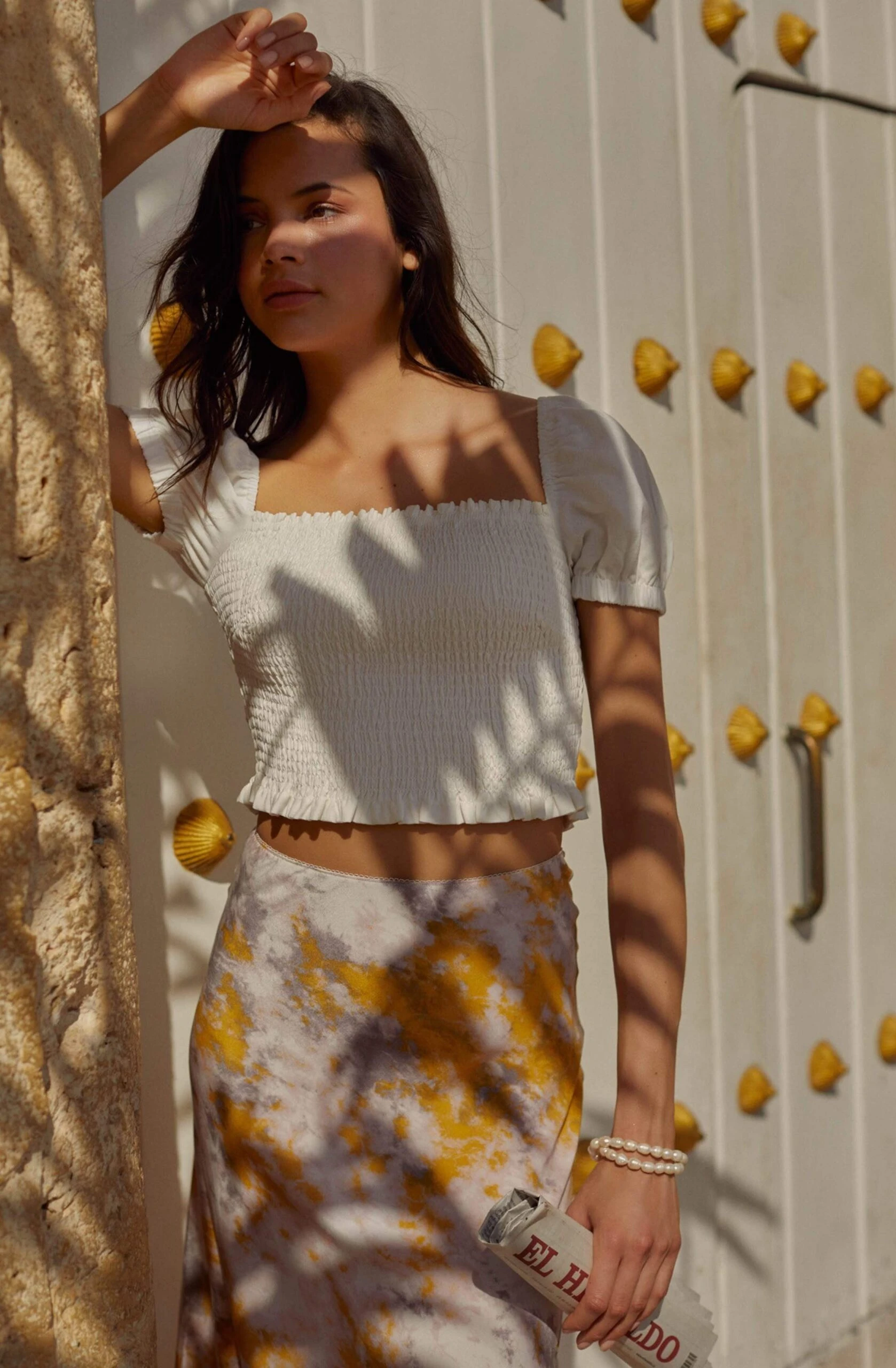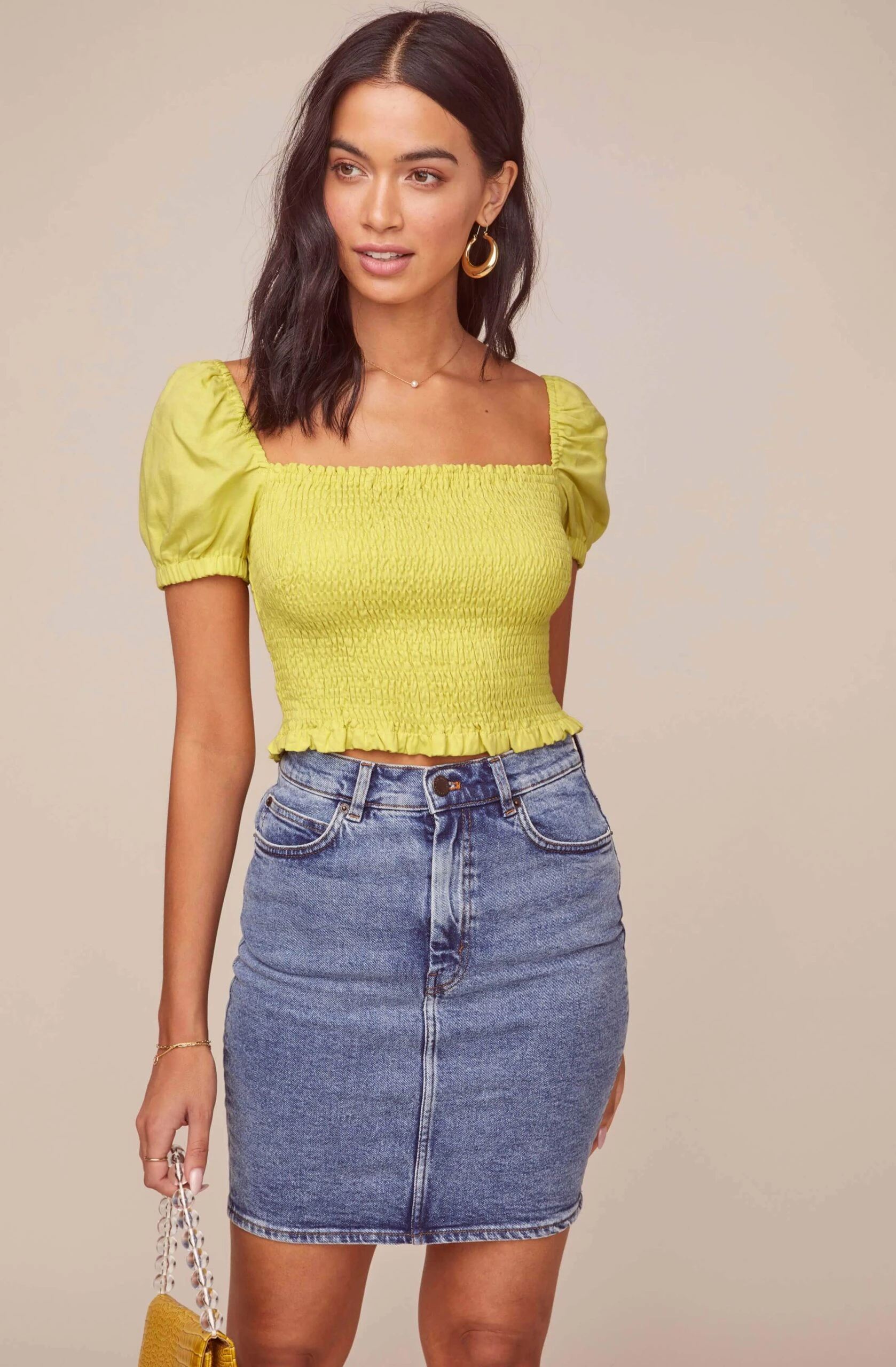 Chic with just the right amount of detail interest. The Mason Crop Top features a square neckline, short puff sleeves and a flattering smocked bodice.