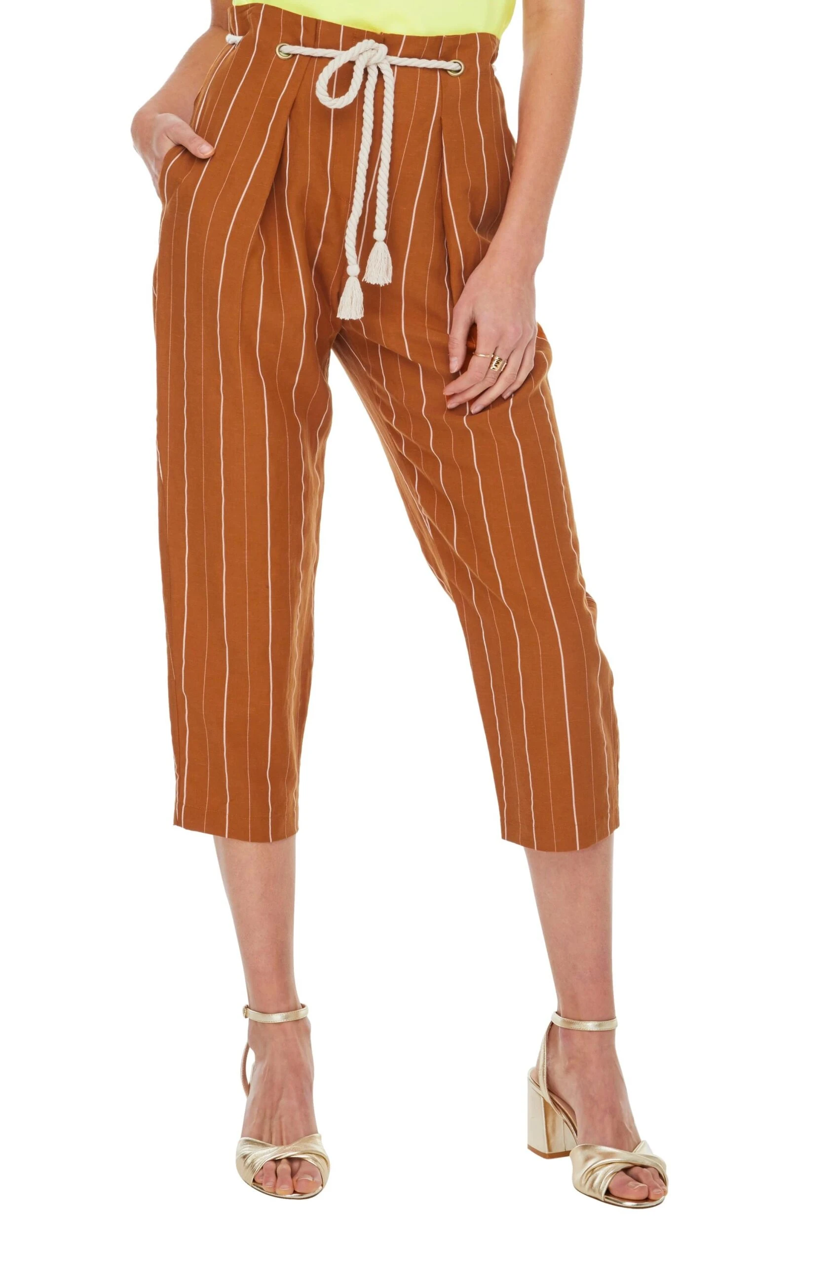 73% Tencel / 25% Linen / 2% Polyester, Inseam: 25 1/4″, Leg Opening: 7 1/4″, Front Rise: 13 5/8″ (Size M), Drawstring & Grommet Closure, Dry Clean Only, Striped, Trousers, Drawstring, Model is Wearing Size S, Model’s Measurements: Height 5’11.5″ // Bust 31″ // Waist 23″ // Hips 34″, Fits True to Size, Style#ACP7024