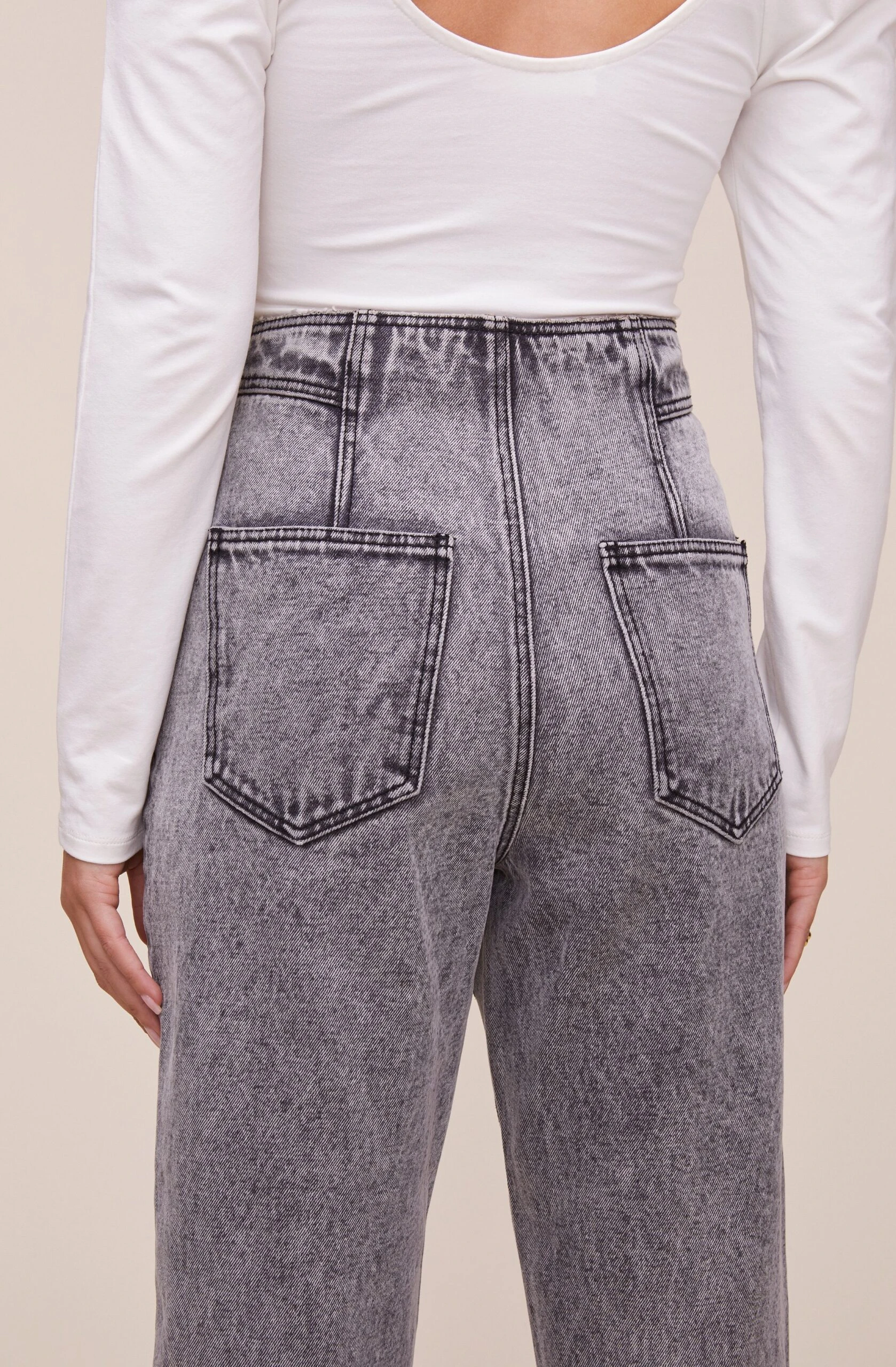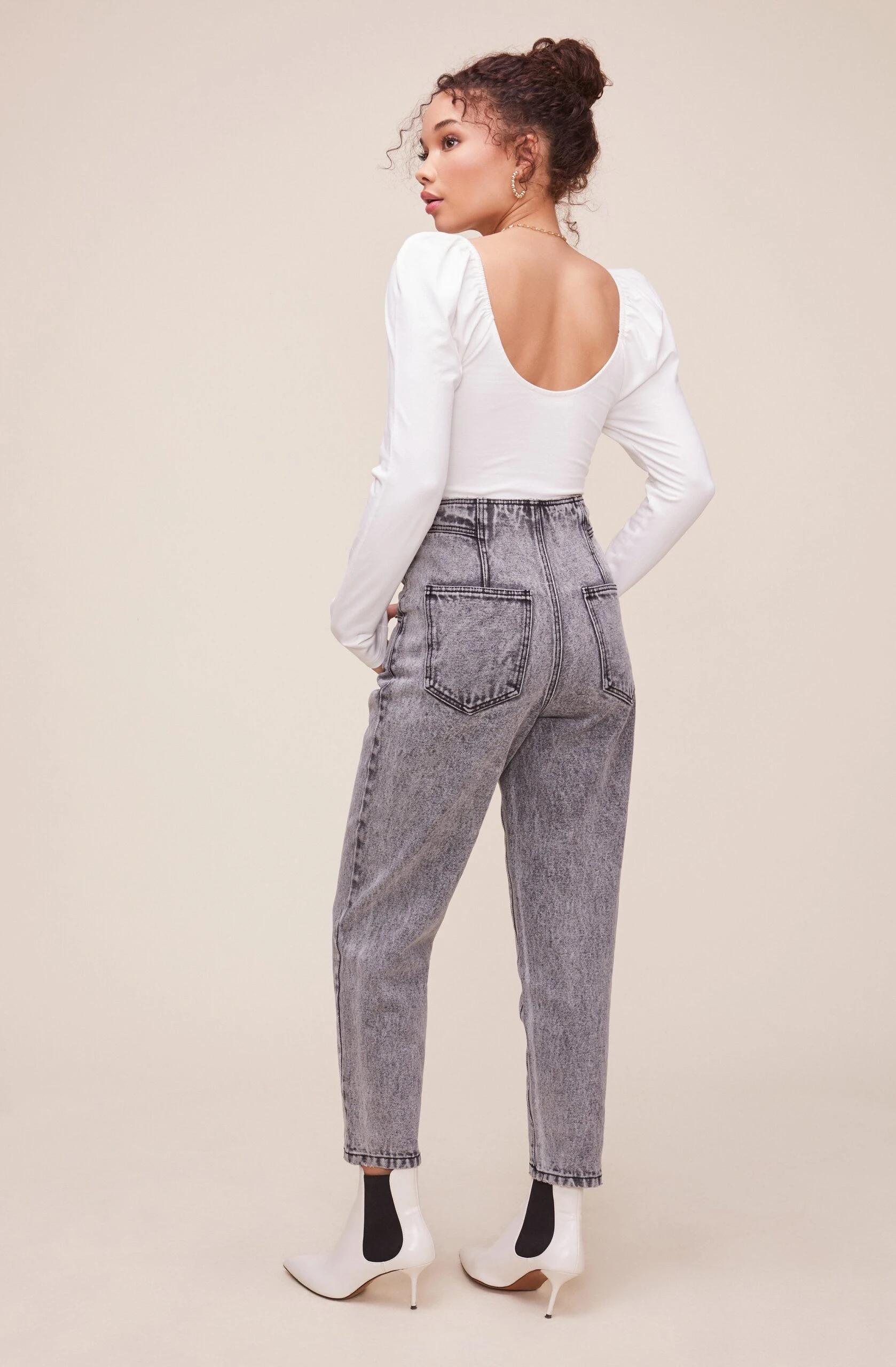 These are the jeans of your dreams! They feature a flattering high waist that leads to a pleated front and four pocket construction. Slim leg silhouette.