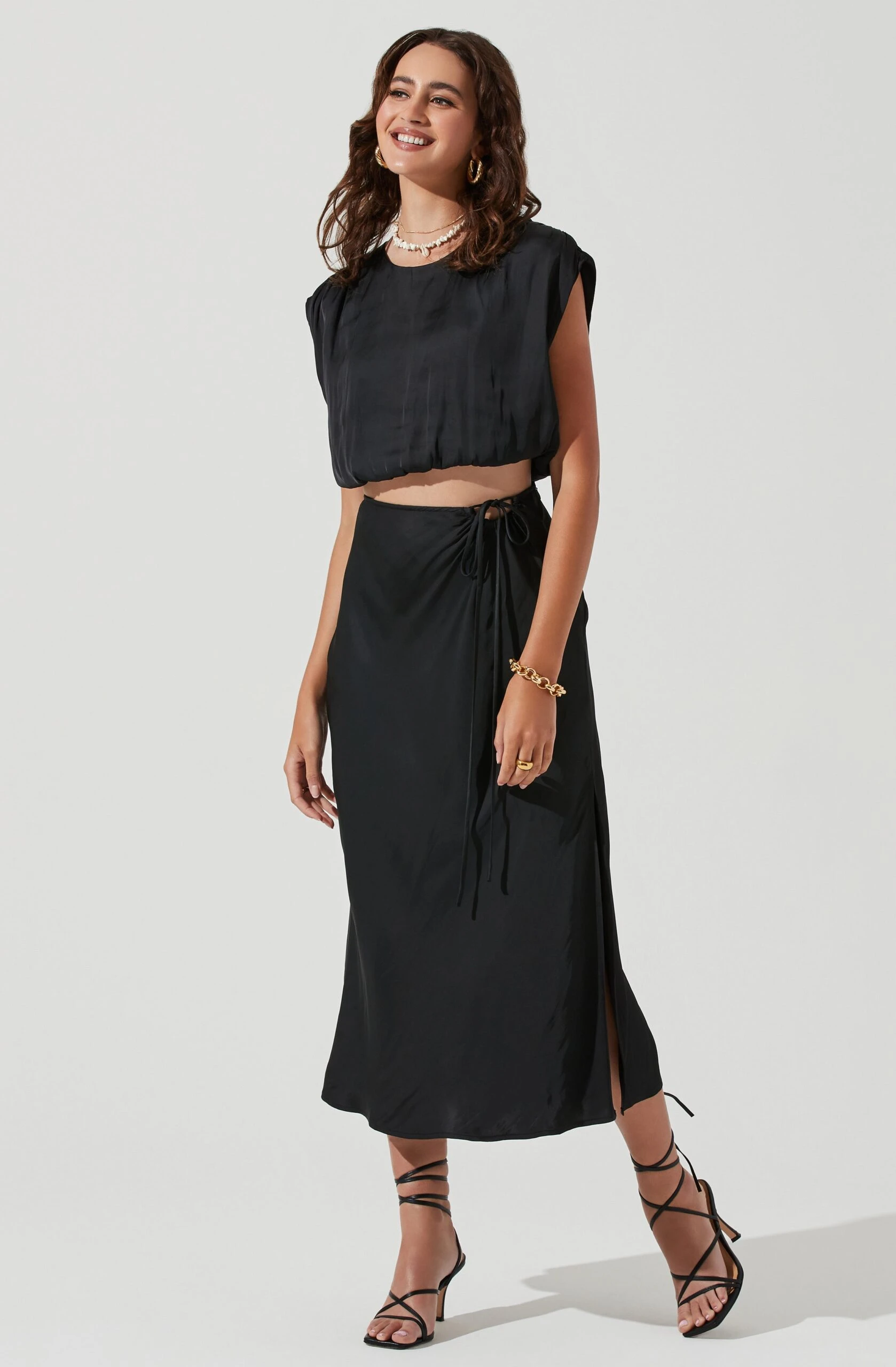 Paired with the Riva Tie Waist Midi Skirt