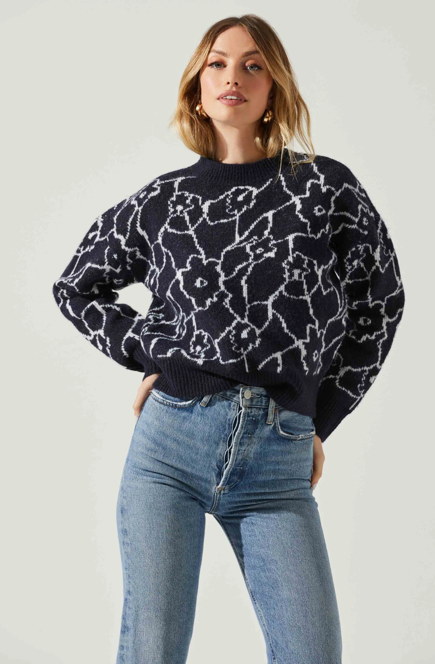SKU: YXN0C 1695263748 Categories: Dresses, New Dresses Tags: 23.08COLL, Date night, Fall Sweater, Flag:New, Flag:New Arrivals, Office, SHOP ALL, SHOPALL, Sweater, Sweaters, TO_BE_MERGED, Vt::Sweaters::Neckline::Mockneck, Vt::Sweaters::Pattern::Floral, Vt::Sweaters::Sleeve Length::Long Sleeve, Vt::Sweaters::Style & Occasion::All Day Wear, Vt::Sweaters::Style & Occasion::Classic, Weekend