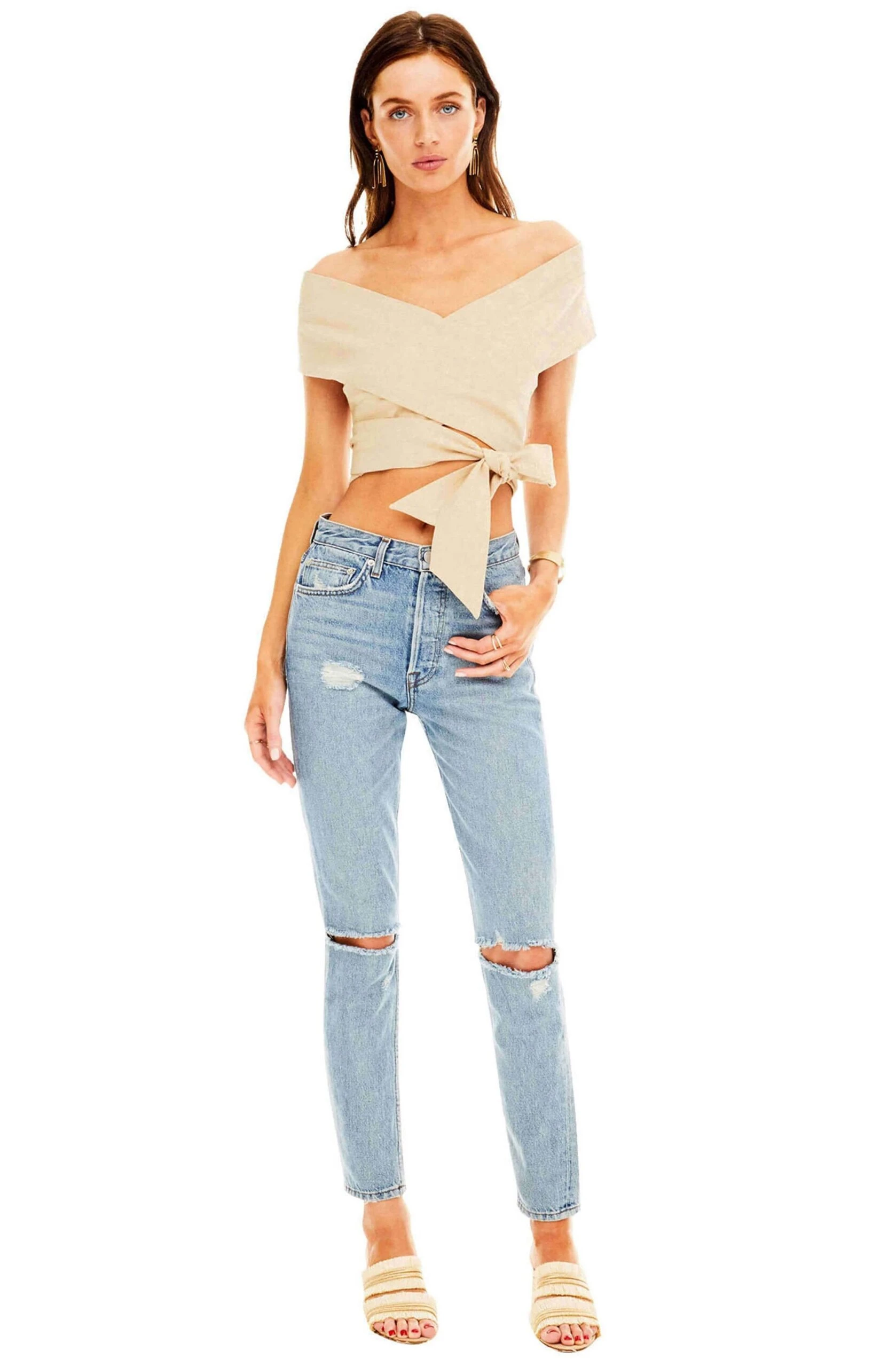 55% Linen / 45% Rayon, Length: 17 3/8″ (Size M), Button and Tie Closure, Dry Clean Only, Model is Wearing Size S, Model’s Measurements: Height 5’10” // Bust 31″ // Waist 24″, Fits True to Size, Style#ACT13624